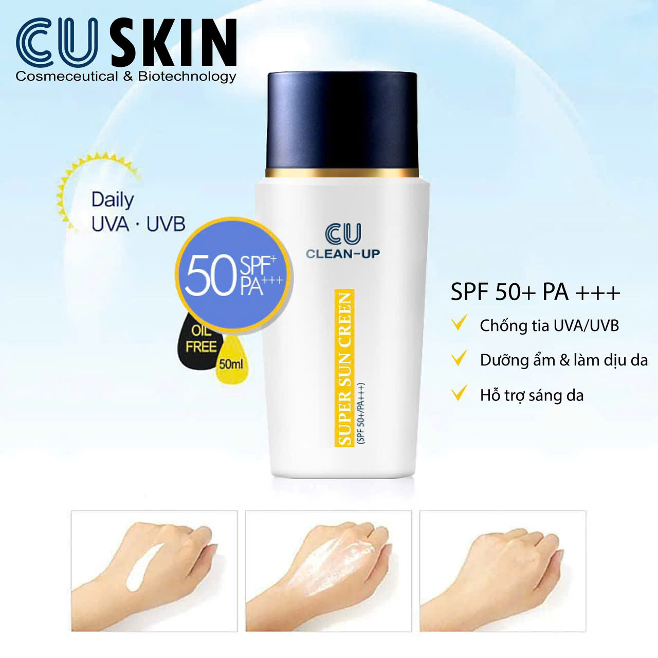 👉🌤SUPER SUNSCREEN 50+ PA+++ giúp Hỗ trợ kiểm soát lượng bã nhờn mang lại cảm giác khô thoáng dễ chịu, nhẹ mặt 👉🌤SUPER SUNSCREEN 50+ PA+++ làm dịu khỏi sự “bỏng rát” và “mất nước” của da ⭐ Không Paraben, Không kích ứng da. Không gây nhờn rít, đổ mồ hôi, gây cảm giác khó chịu cho da bạn 🌈 Tăng cường độ ẩm nên tạo cảm giác tươi mát cho da 🌈 Nuôi dưỡng làn da khỏe mạnh, đồng thời có khả năng chống oxy hóa, dưỡng ẩm nhẹ nhàng 🌈 Ngăn chặn và hạn chế tối đa tình trạng lão hóa và khô da khi đi nắng nhiều 🌈 Sản phẩm có SPF 50+/PA đến ba dấu cộng (+++) mang đến hiệu quả chống tia UVA, UVB rất cao 🌈 Kết cấu dạng kem lỏng ẩm mượt. Khi apply lên da sẽ nhanh chóng bám vào da, không gây bệt 🌈 Đặc biệt thích hợp cho các loại da như: Da hỗn hợp, da dầu và nhạy cảm… 👉Hãy liên hệ ngay với chúng tôi